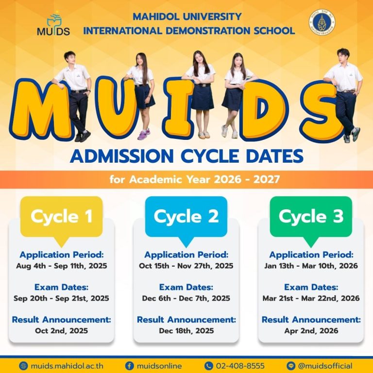 MUIDS is an international high school near Bangkok that is affiliated with Mahidol University. It helps students find their path to opportunity, excellence, and distinction. A mixture of Thai and American educational standards help students develop the skills and confidence they need to succeed at any university anywhere in the world.