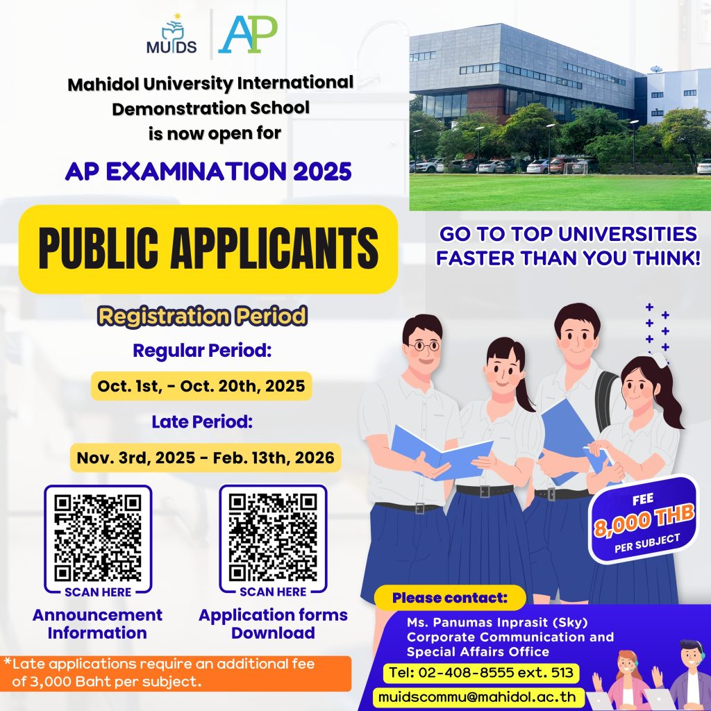 MUIDS is an international high school near Bangkok that is affiliated with Mahidol University. It helps students find their path to opportunity, excellence, and distinction. A mixture of Thai and American educational standards help students develop the skills and confidence they need to succeed at any university anywhere in the world.