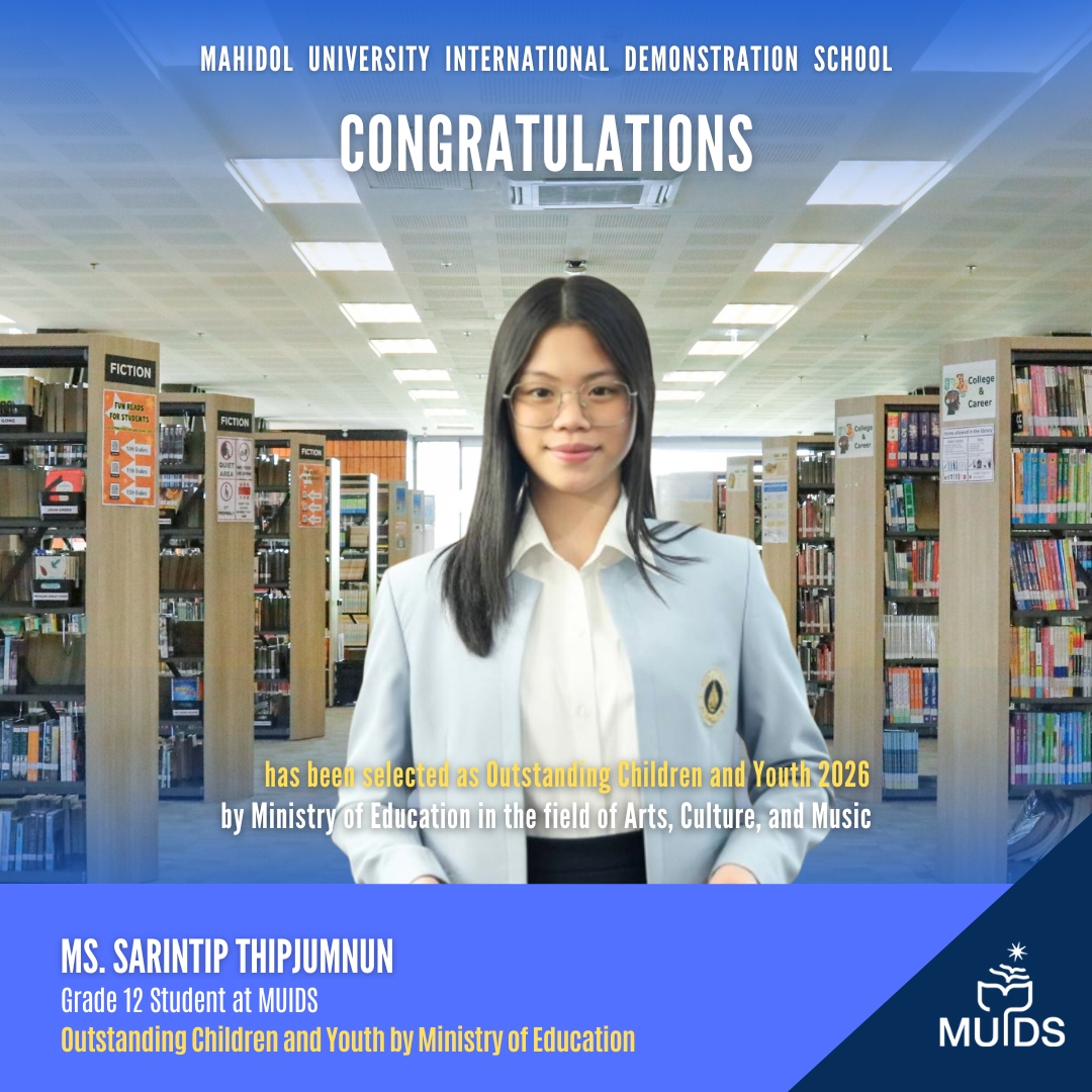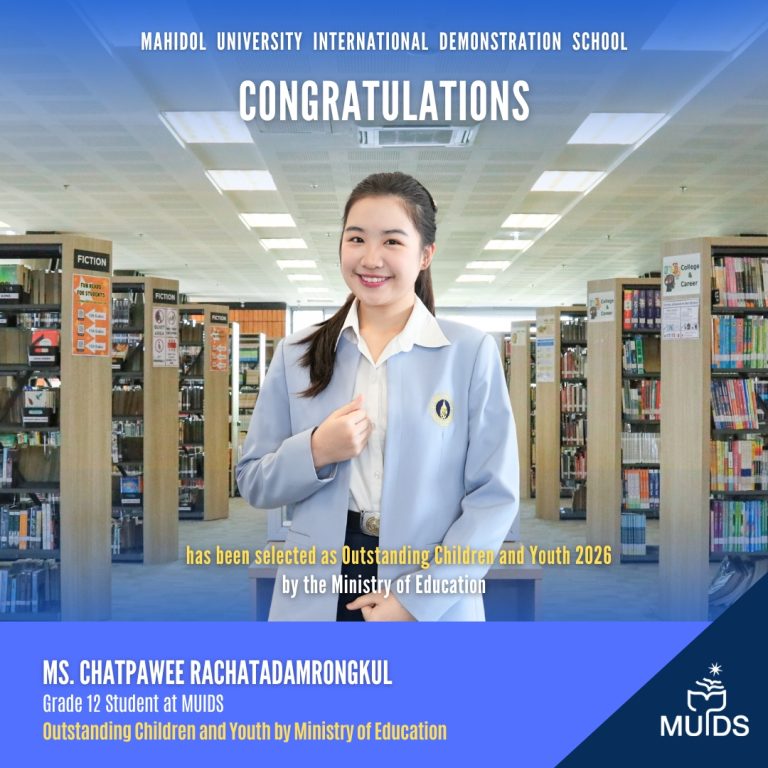 Mahidol University International Demonstration School (MUIDS) congratulates our students who have been selected as Outstanding Children and Youth 2026 by the Ministry of Education, Thailand.