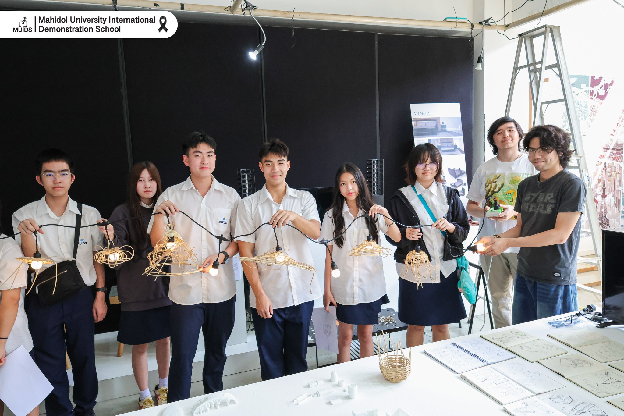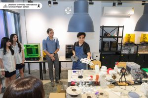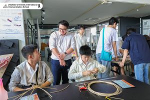 During the visit, students participated in a hands-on Product Design Workshop, using rattan to create a handcrafted lamp, gaining practical insights into the architectural and design process. The experience was further enriched by a guided tour of the school’s facilities, including 3D printing studios and other advanced design laboratories 🖨️🏫.