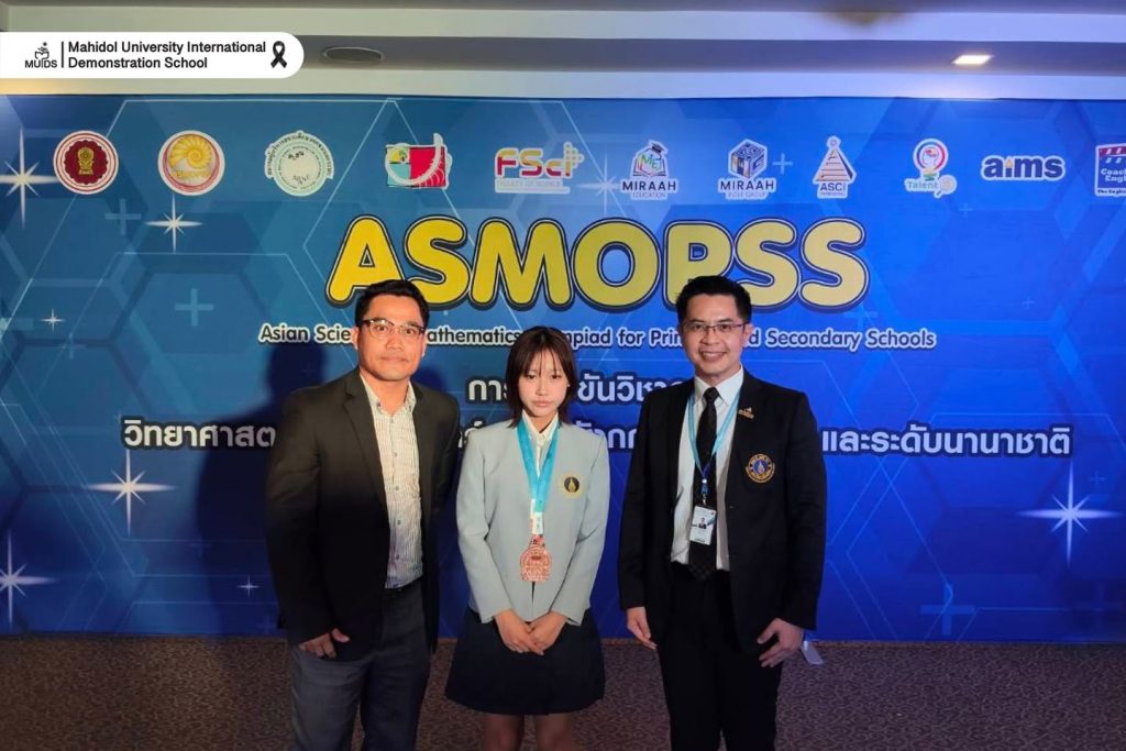 On 22 December 2025, Assoc. Prof. Dr. Singhanat Nomnian, Director of Mahidol University International Demonstration School (MUIDS), warmly congratulated Engwipa Promtong (Grade 11) on her outstanding achievement in being selected as a representative of Thailand and receiving the Bronze Medal at the English for Speakers of Other Languages International Olympiad (ESOLIO).