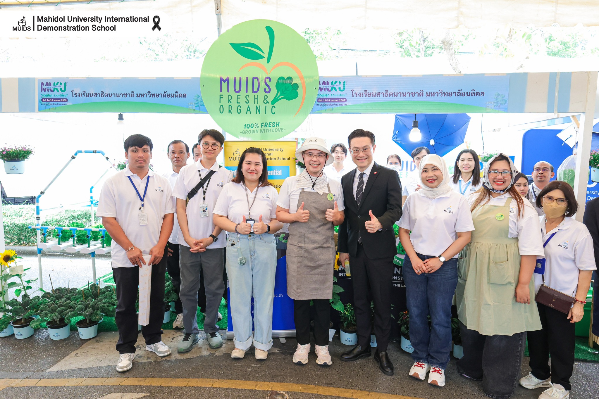 During the fair, MUIDS set up a school booth showcasing hydroponic vegetables grown by the school. Visitors can also shop for fresh vegetables, school souvenirs, and student-made products at the Product Innovation from MU & KU Zone, from 14–18 January 2026, at Mahidol University, Salaya Campus.