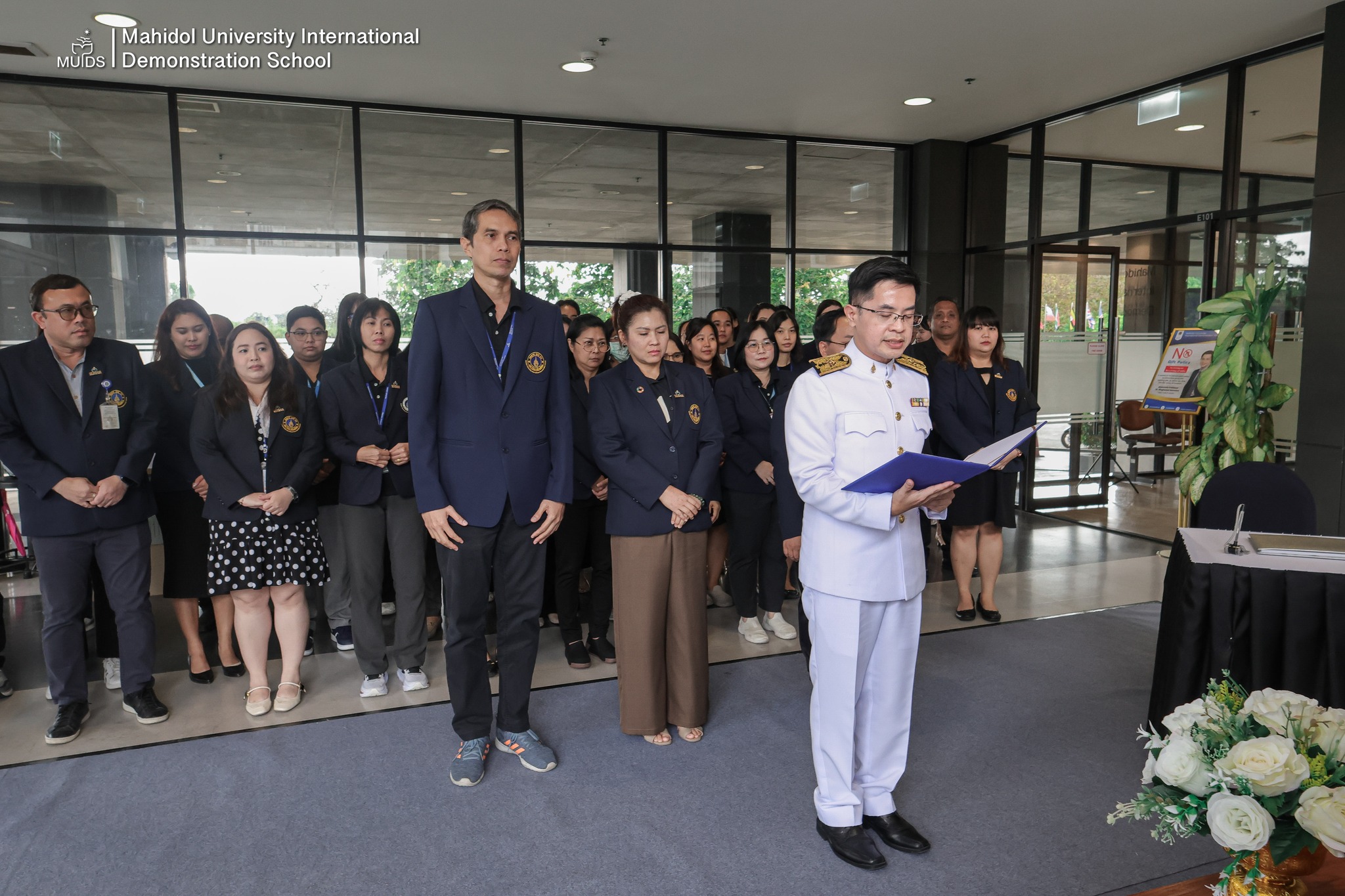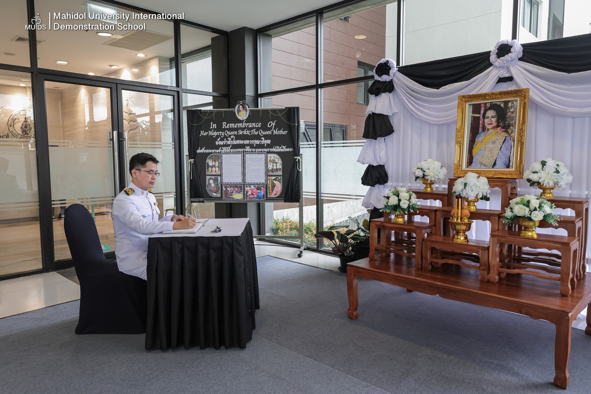 On 3 November 2025, Assoc. Prof. Dr. Singhanat Nomnian, Director of Mahidol University International Demonstration School (MUIDS), together with MUIDS executives, teachers, staff, and students, paid tribute and expressed their deepest respect and gratitude for Her Majesty Queen Sirikit The Queen Motherās boundless grace and benevolence. The Mourning and Remembrance Ceremony was held to honor Her Majestyās lifelong dedication and immeasurable contributions to the Thai people and the nation.