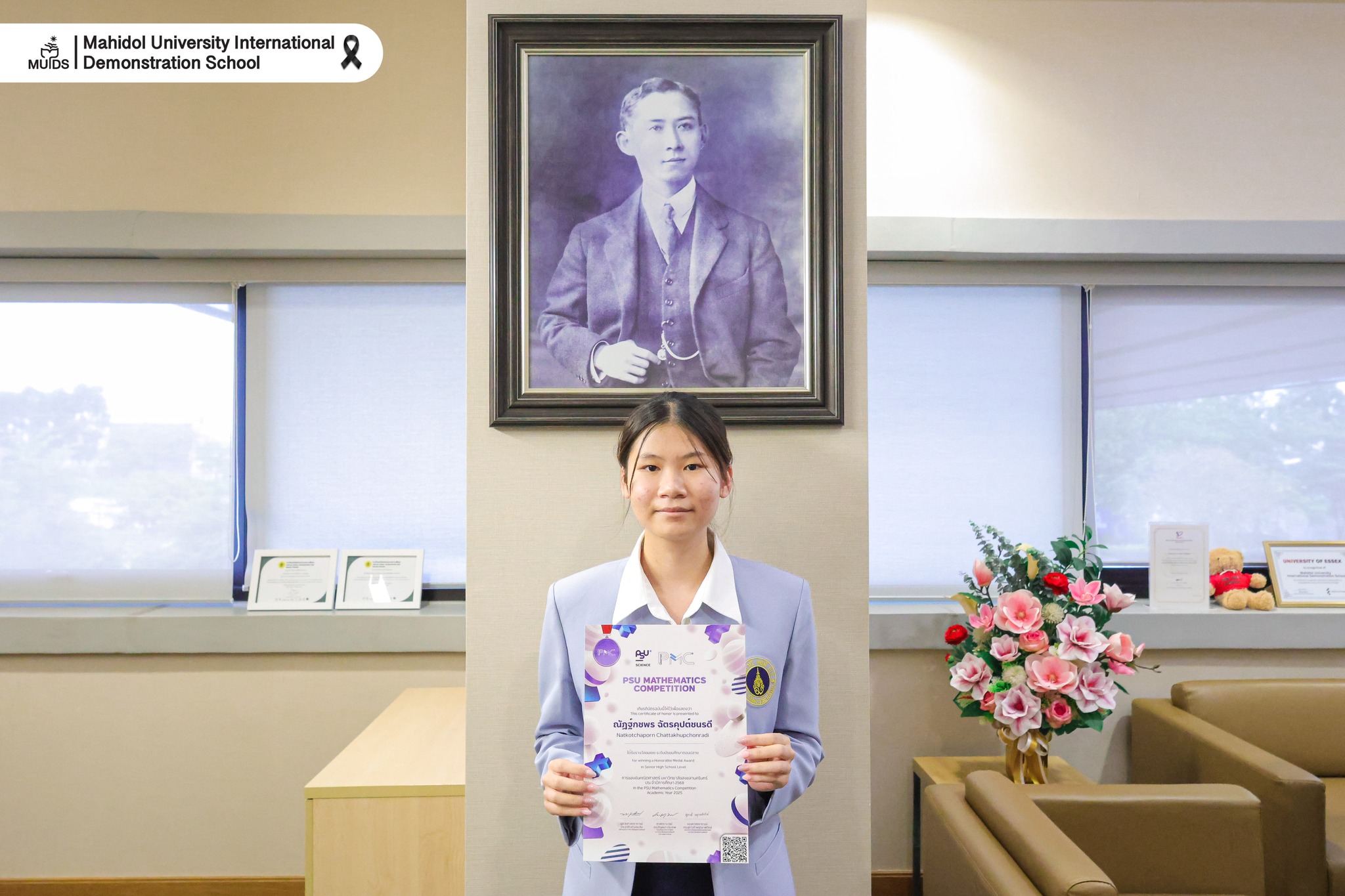 Congratulations to Natkotchaporn Chattakhupchonradi for being awarded the Honorable Medal in Senior High School Level for outstanding performance in the PSU Mathematics Competition, Academic Year 2025! 📘✨