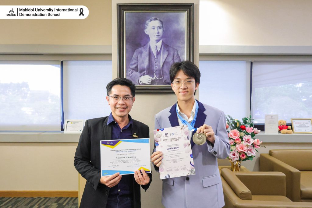 Congratulations to Yossapee Manaspiya for winning the Silver Medal in Senior High School Level for outstanding performance in the PSU Mathematics Competition, Academic Year 2025! 🥈📐✨