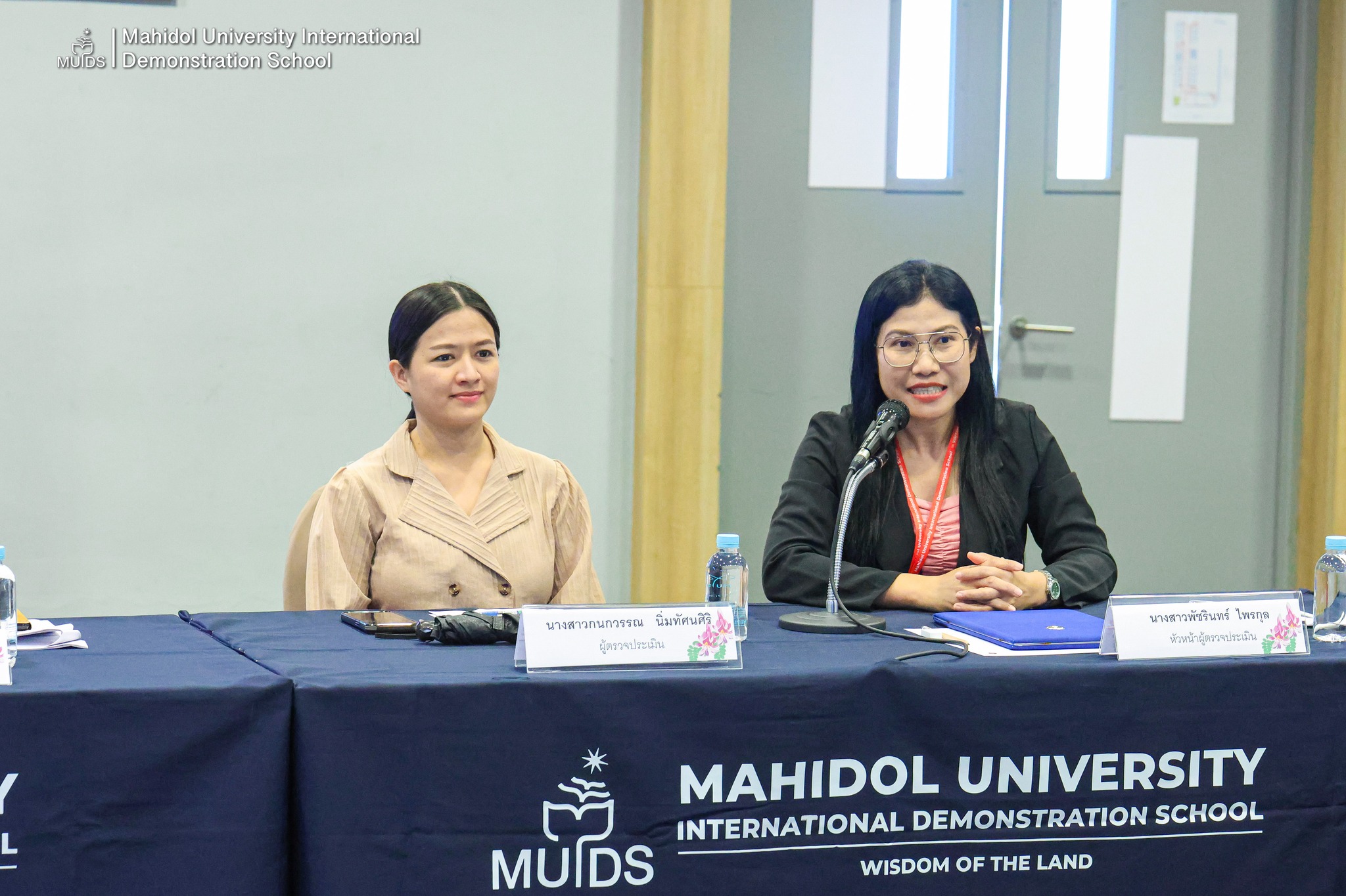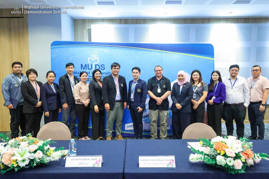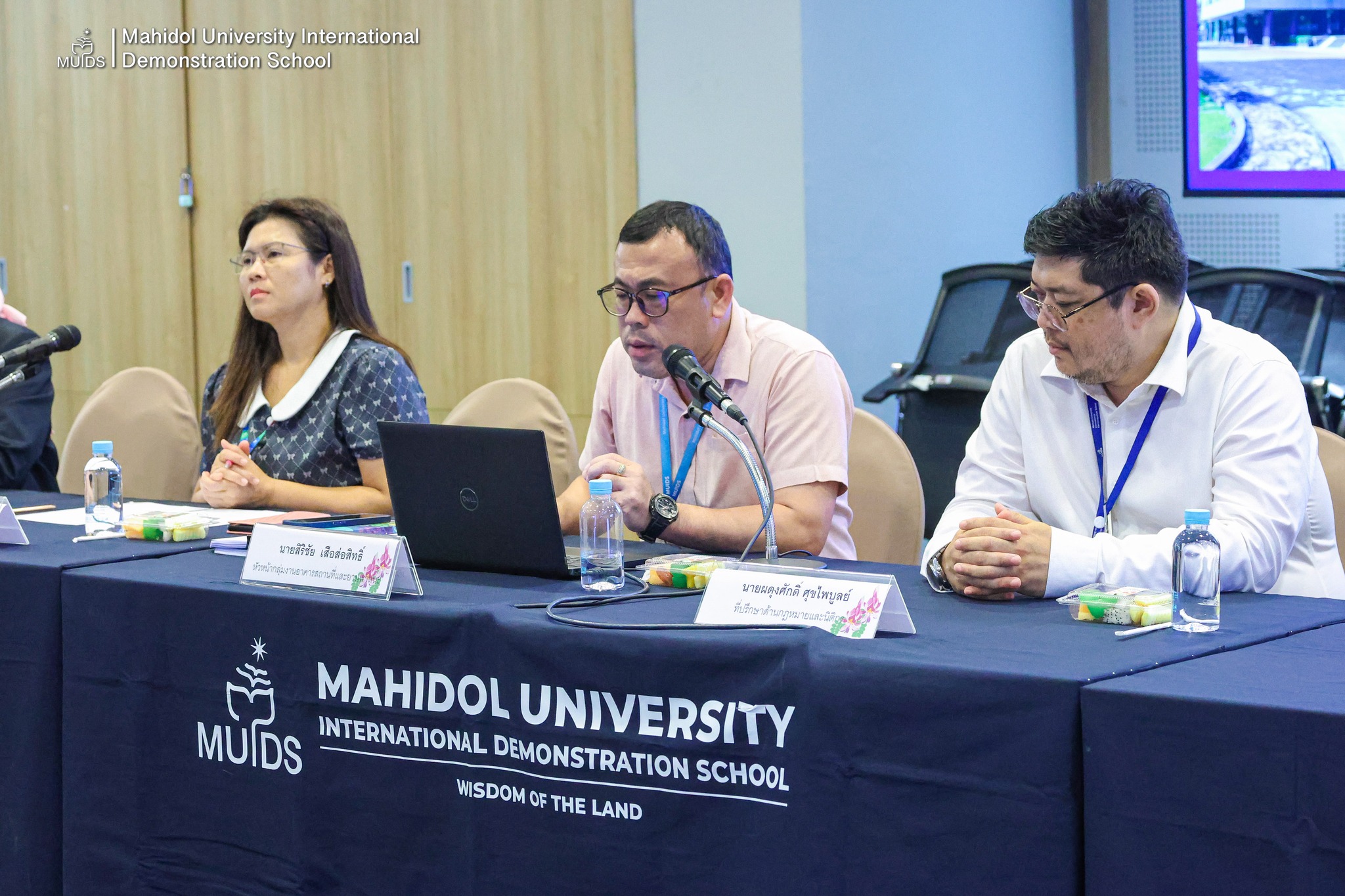 On 23 September 2025, Assoc. Prof. Dr. Singhanat Nomnian, Director of Mahidol University International Demonstration School (MUIDS), together with Ms.Usama Sangserm, Deputy Director for Administration and staff, warmly welcomed Lect. Dr. Ritthirong Pundee, Specialist from Mahidol University Nakhonsawan Campus Project, and the assessment team from the Center for Occupational Safety, Health and Workplace Environment Management (COSHEM).