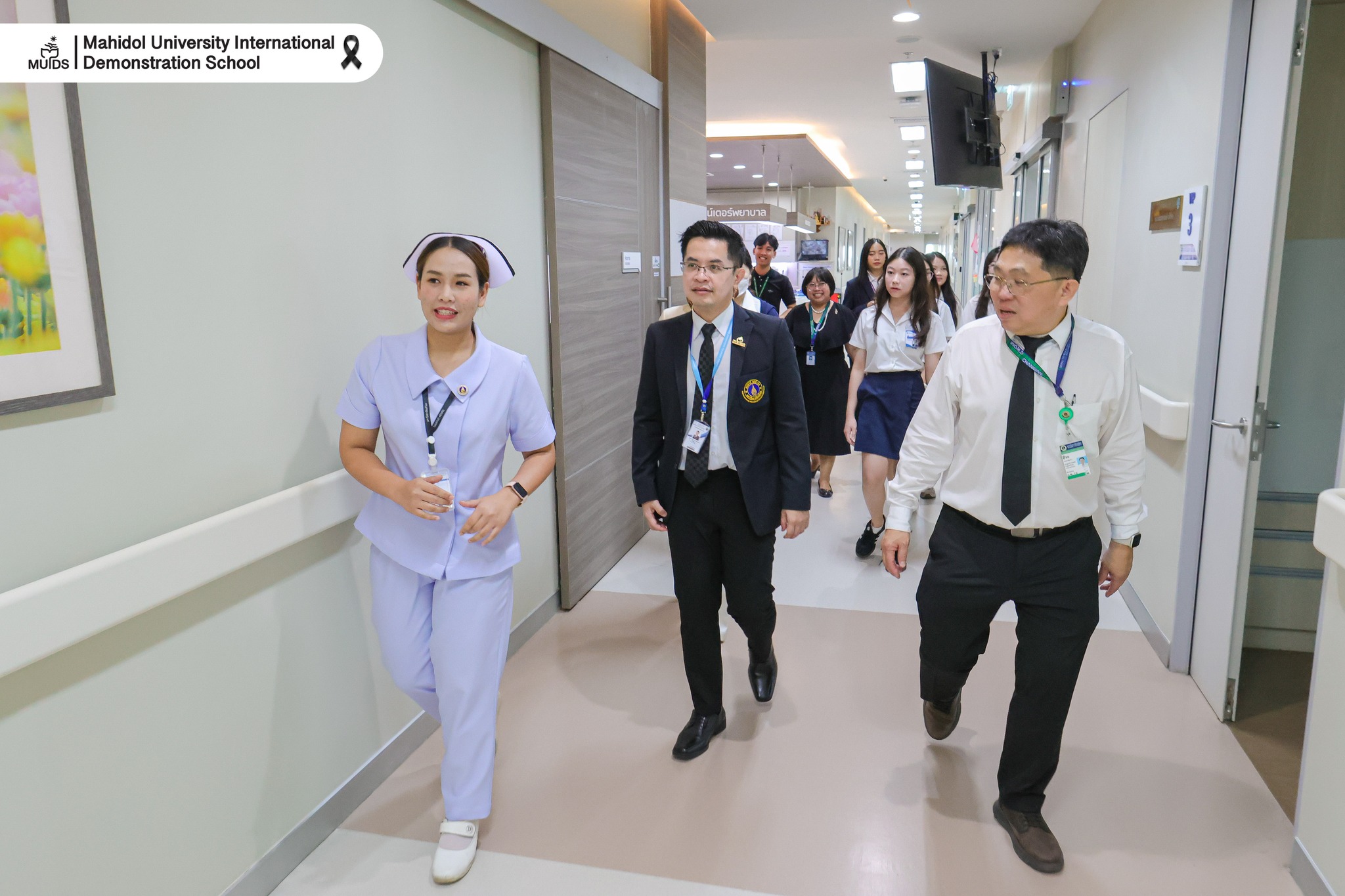 On 22 December 2025, Assoc. Prof. Dr. Singhanat Nomnian, Director of Mahidol University International Demonstration School (MUIDS), together with Ms. Usama Sangserm, Deputy Director for Administration, visited Grade 11 MUIDS students participating in their Capstone Project at the Golden Jubilee Medical Center (SiGJ), Faculty of Medicine Siriraj Hospital, Mahidol University.