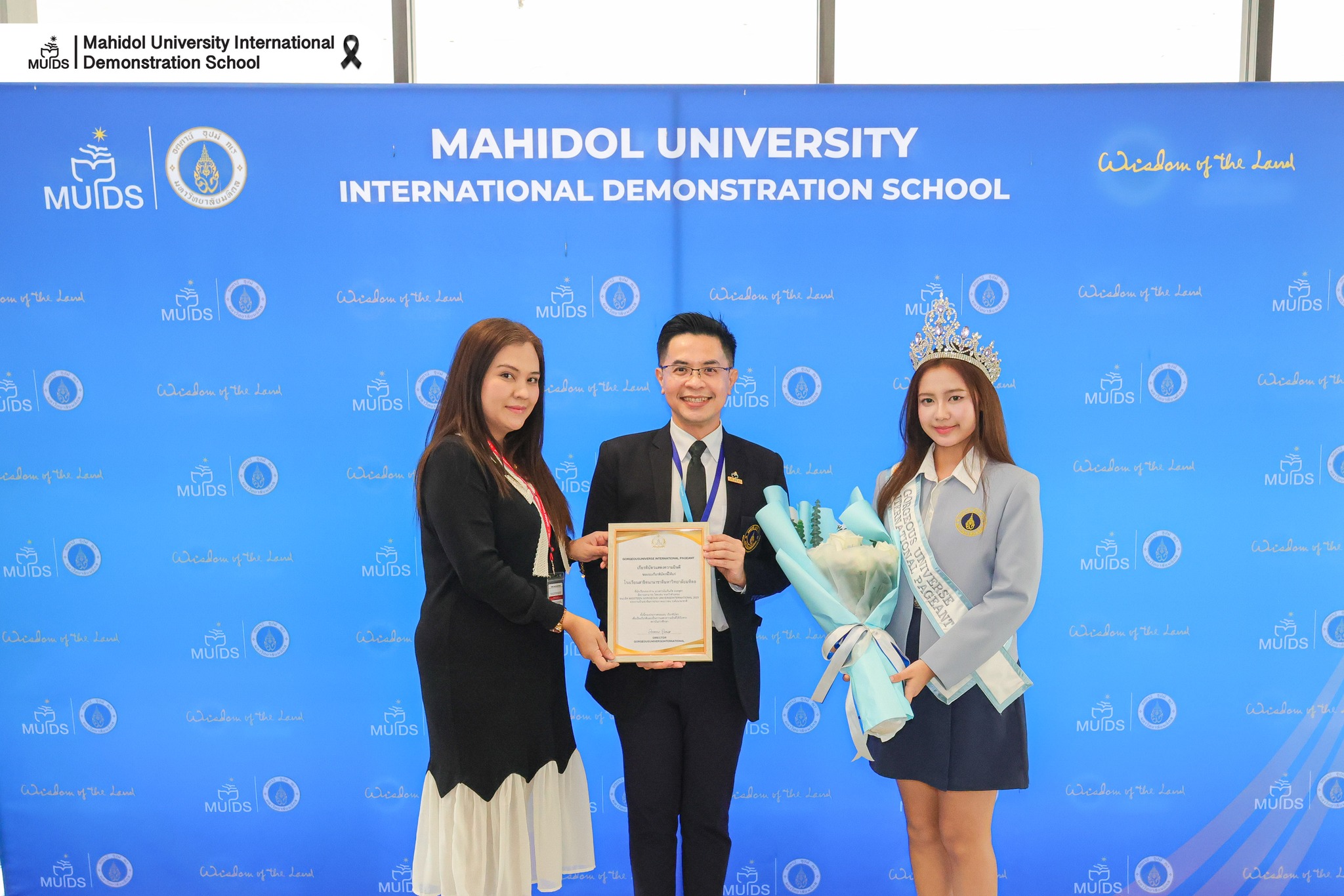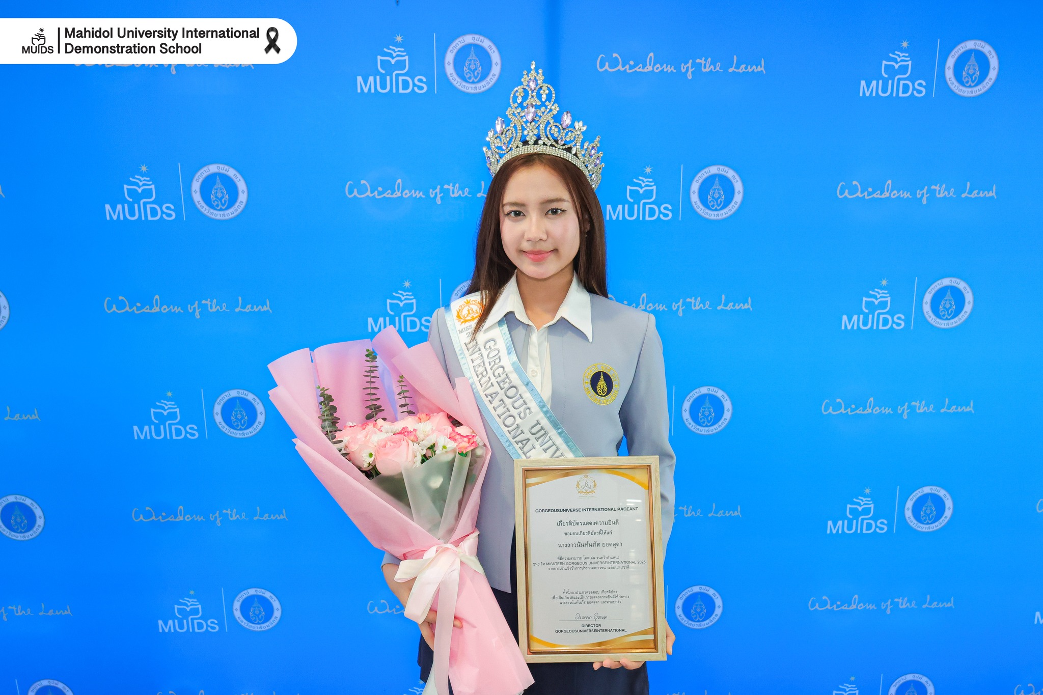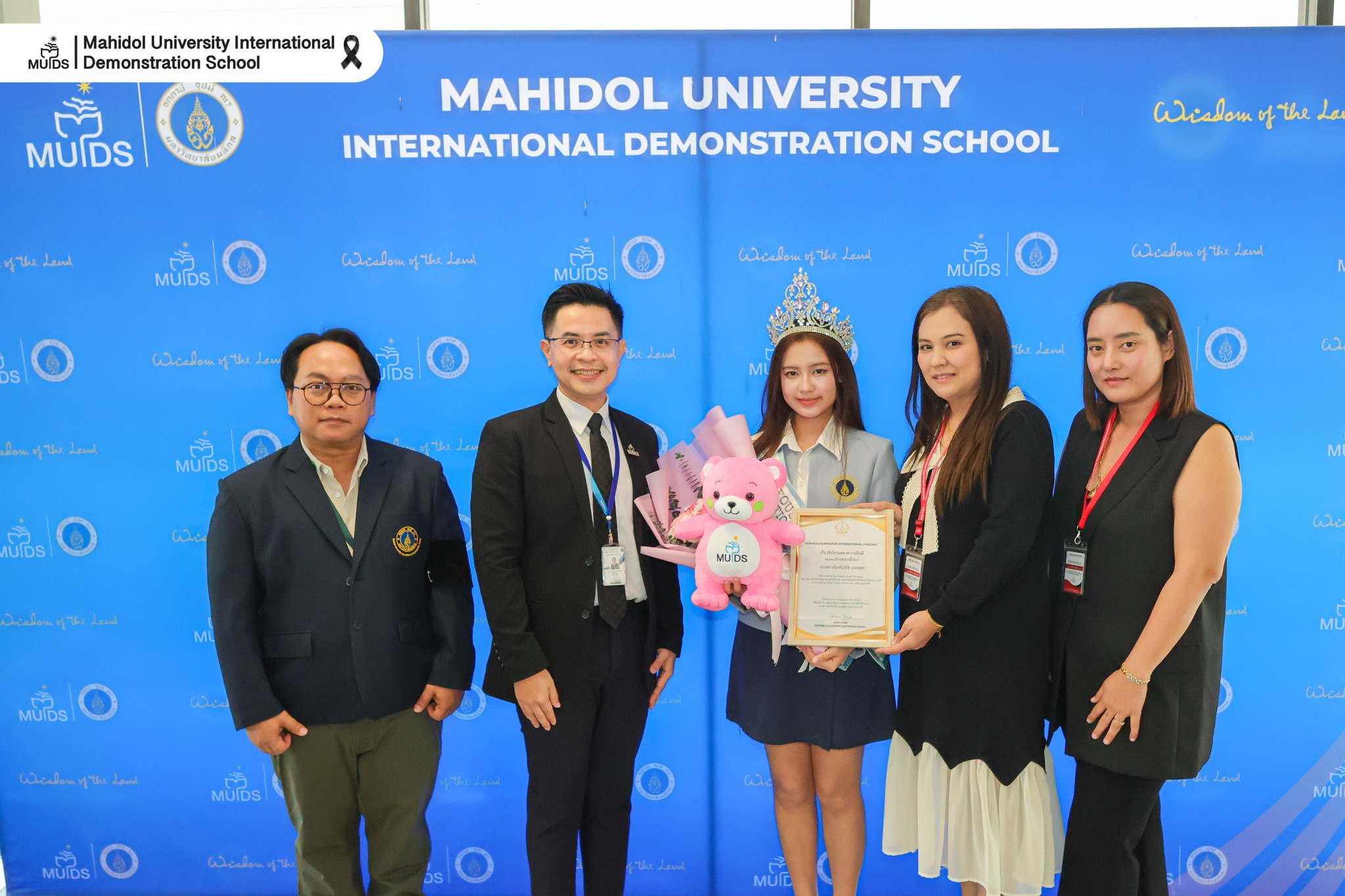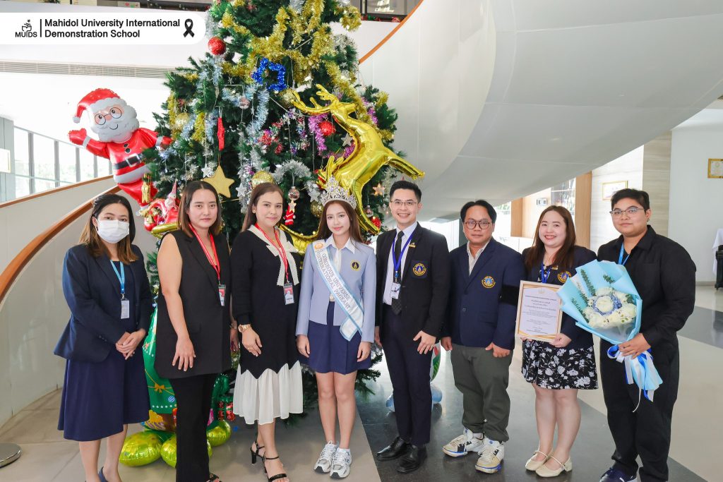 During the visit, the company presented a certificate and bouquet to the school and to Ms. Nannaphas Yodsuda, a MUIDS student who achieved Rank 1 in the Missteen Gorgeous Universe International 2025 pageant.