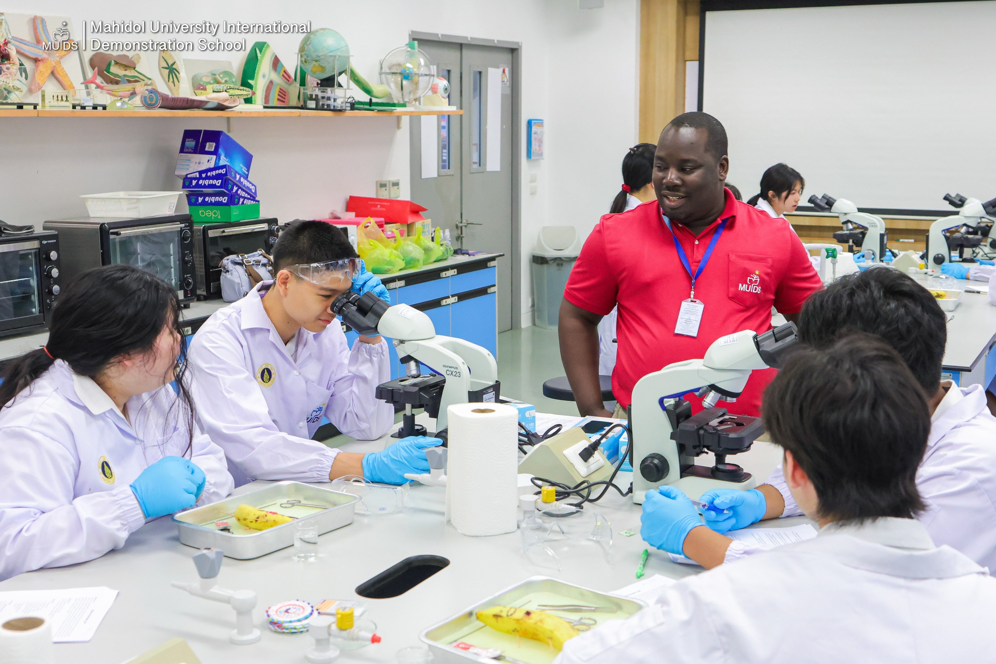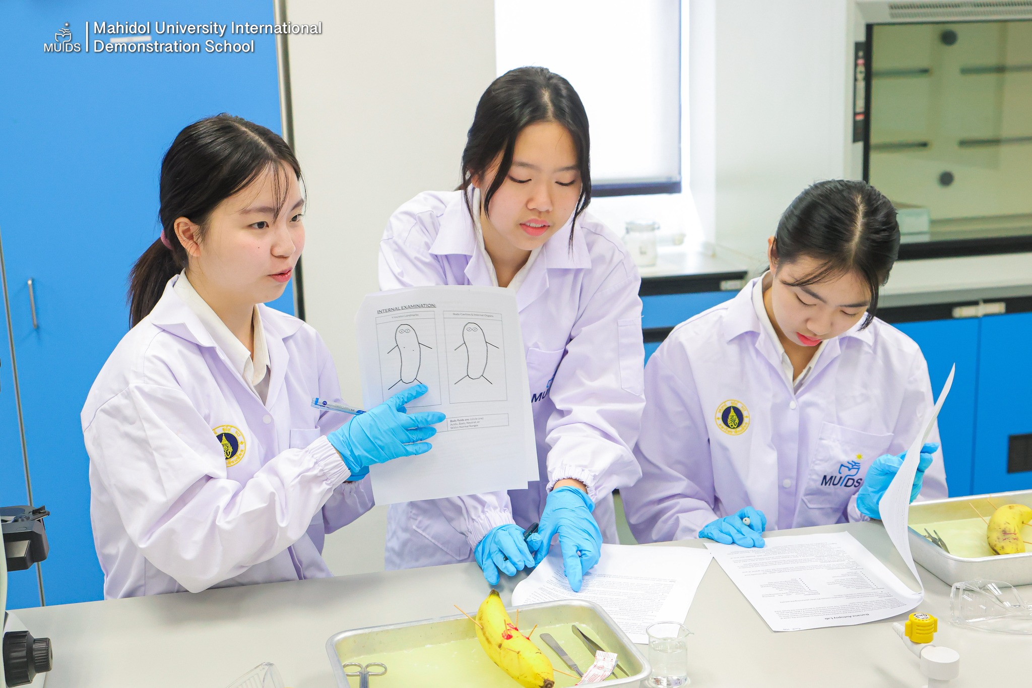 Mahidol University International Demonstration School (MUIDS) students enjoyed a hands-on science class designed to connect theory with real-world practice. They applied their knowledge of anatomical terminology by locating areas of interest on the body, using a creative model, the “dead banana”.